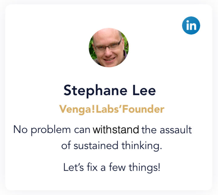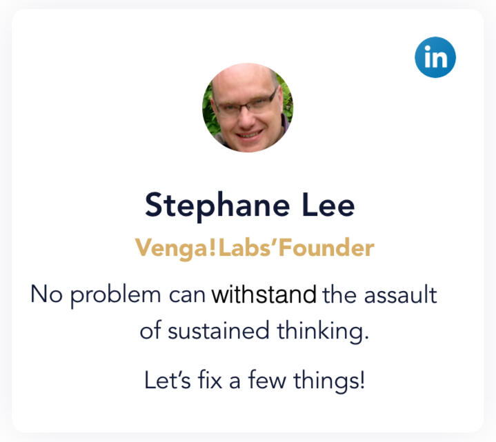 The driving force behind Venga!Labs is the perception that many processes we are submitted to are a vestige of the past; since they were created, many legacy layers were added on top of one another. Eventually, we have a flawed process, utterly complicated, difficult to maintain, or improve. Younger generations don't understand the complexity they inherited, nor the seeming absence of common sense in supervision. It's time to build processes for the digital generation and stop thinking about contingencies.Let's make it simple and meaningful!